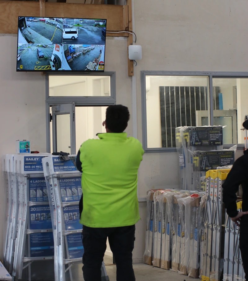 An industrial access solutions store stocking ladders and scaffolding, needing to monitor shop visitors and warehouse incidents.