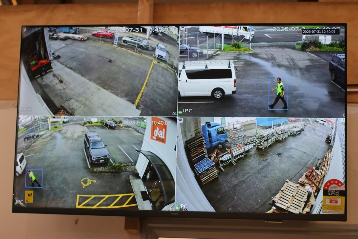 With staff mostly busy in the warehouse out back, the CCTV system helps them see visitors arriving in the carpark and inside the retail shop via a large screen and an alarm chime on entry into the shop. Additionally an 8MP varifocal camera is pointed at the gate to primarily capture vehicle license plates with great detail.